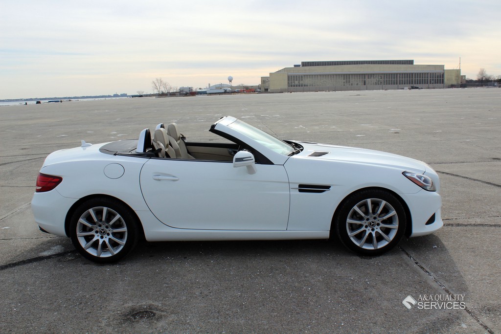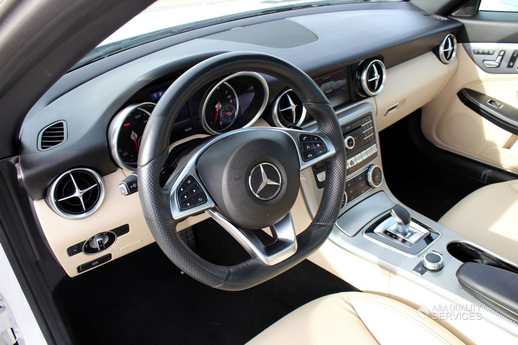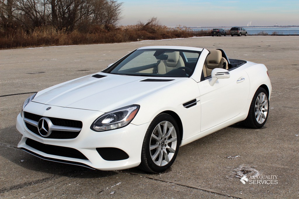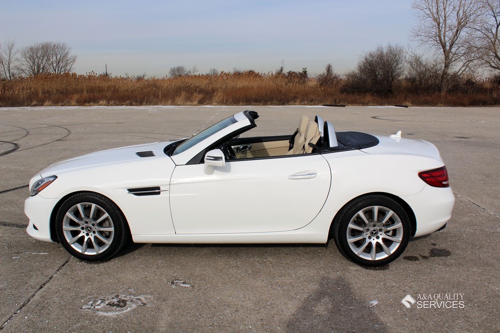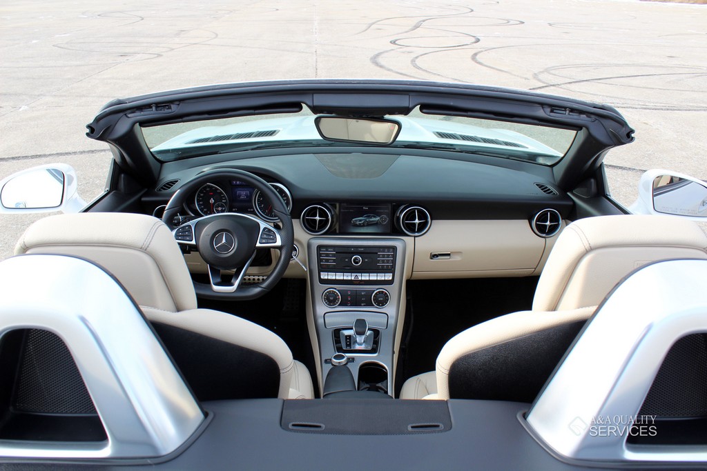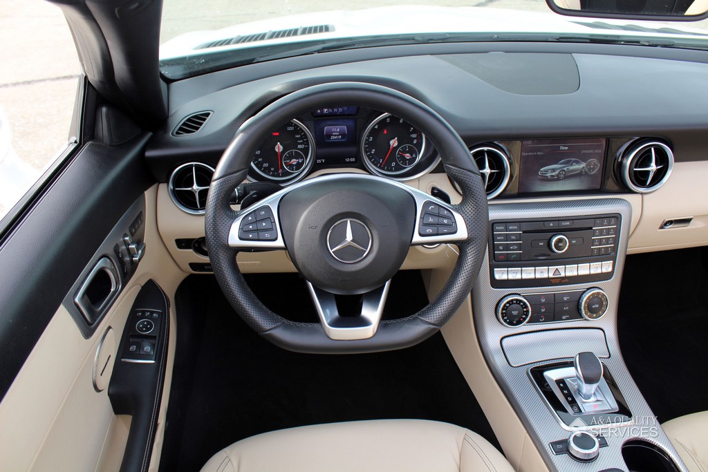 This particular 2017 Mercedes-Benz SLC300 Convertible is finished in White with Beige leather interior. This vehicle has 25K original highway miles. The exterior and interior are in good condition. One owner and Clean Carfax. All power equipment on this vehicle is in working order. There are no problems with the engine. The condition of the interior is clean. The miles you see are the actual miles for this vehicle. Great, smooth shifting transmission. For more information on the condition study the photographs. Please make sure that you scroll all the way to the bottom to see all sets of photographs. The car is in great condition mechanically. It has no noticeable problems. The car was maintained well during the prior possession. Overall, the car is in great condition. The car has a clean title. The car doesn't need anything, except a NEW OWNER.
