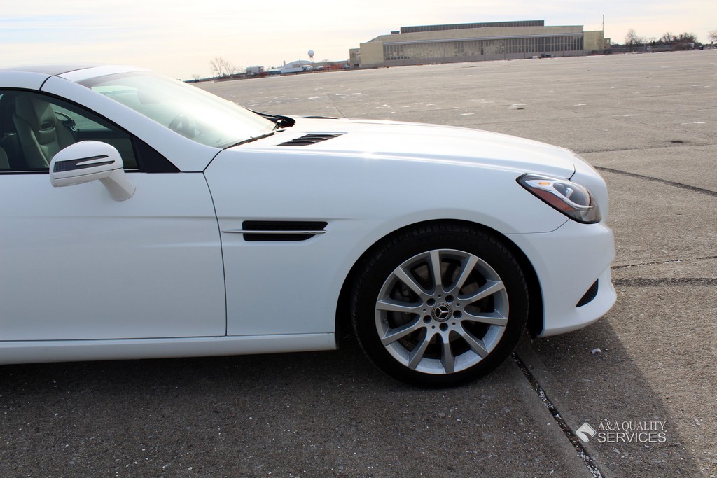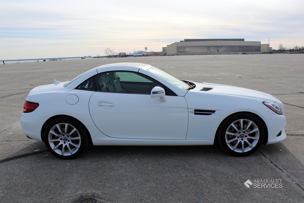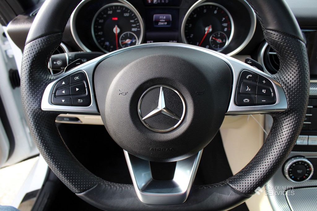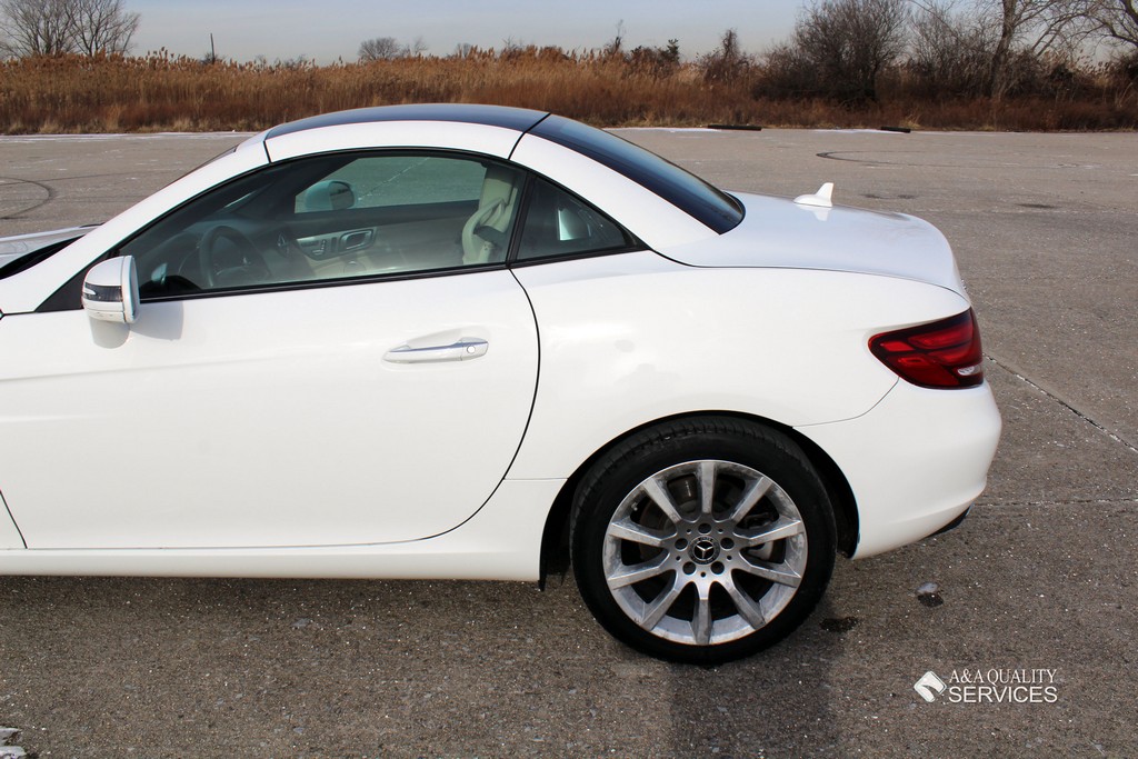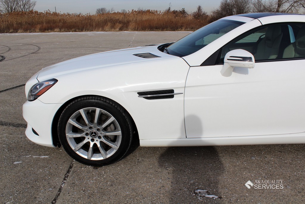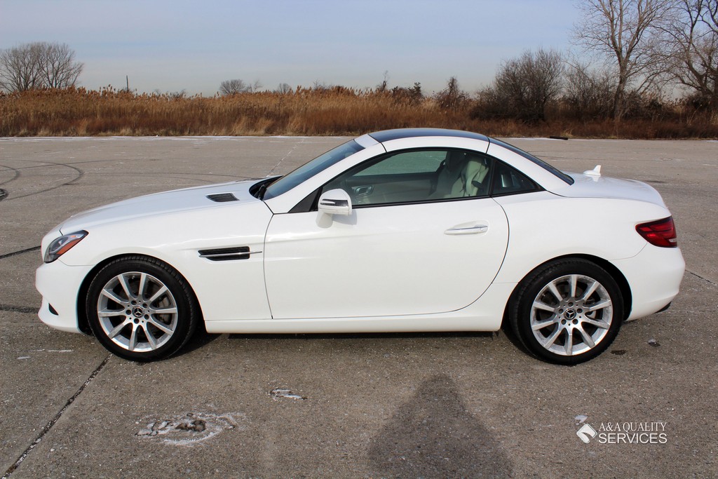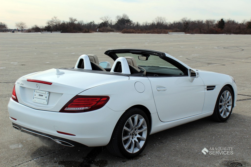 This particular 2017 Mercedes-Benz SLC300 Convertible is finished in White with Beige leather interior. This vehicle has 25K original highway miles. The exterior and interior are in good condition. One owner and Clean Carfax. All power equipment on this vehicle is in working order. There are no problems with the engine. The condition of the interior is clean. The miles you see are the actual miles for this vehicle. Great, smooth shifting transmission. For more information on the condition study the photographs. Please make sure that you scroll all the way to the bottom to see all sets of photographs. The car is in great condition mechanically. It has no noticeable problems. The car was maintained well during the prior possession. Overall, the car is in great condition. The car has a clean title. The car doesn't need anything, except a NEW OWNER.