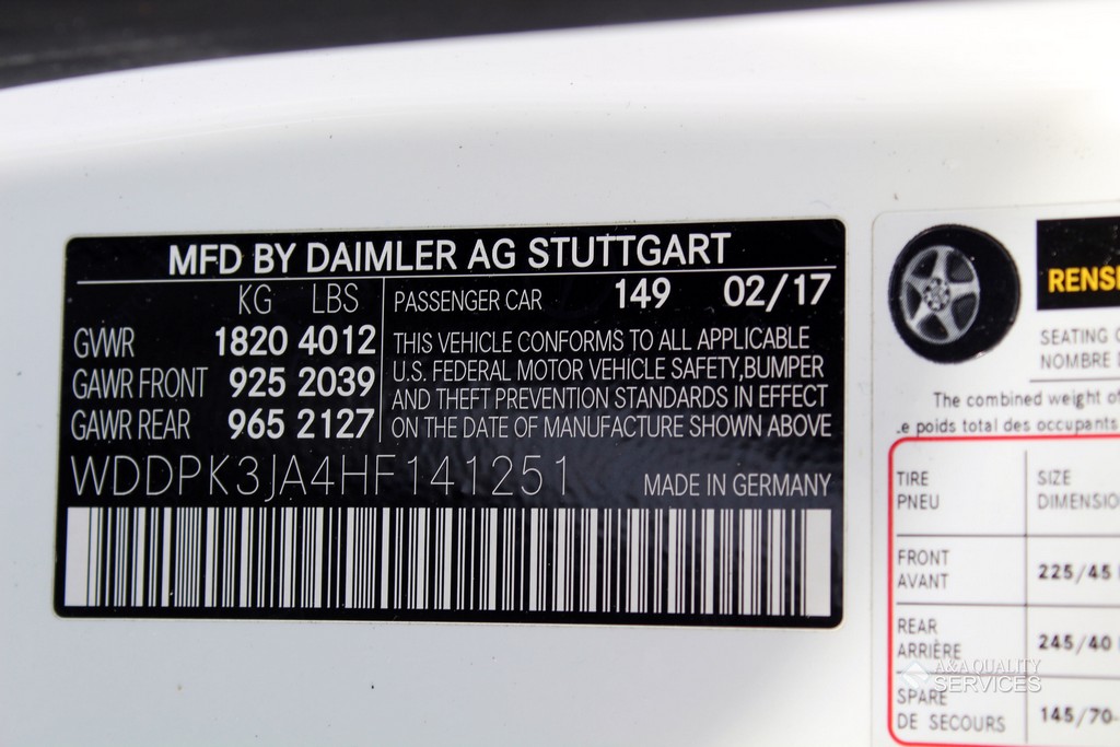 | Transmission: | Automatic | Engine: | 4 Cylinder 2.0L | VIN: | WDDPK3JA4HF141251 |