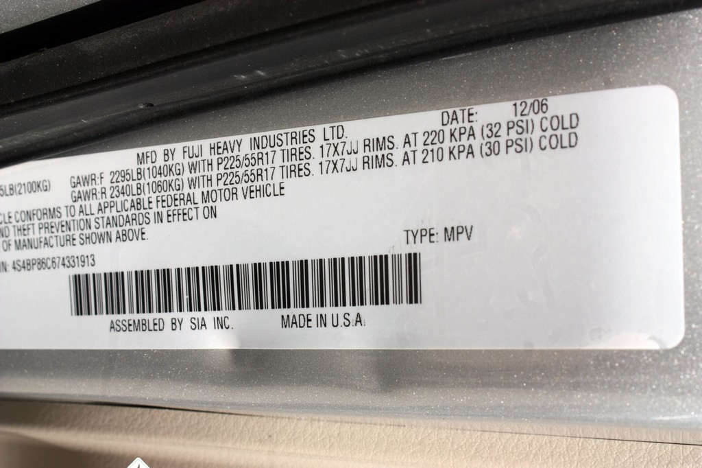 | Transmission: | Automatic | Engine: | 6 Cylinder 3.0L | VIN: | 4S4BP86C674331913 |