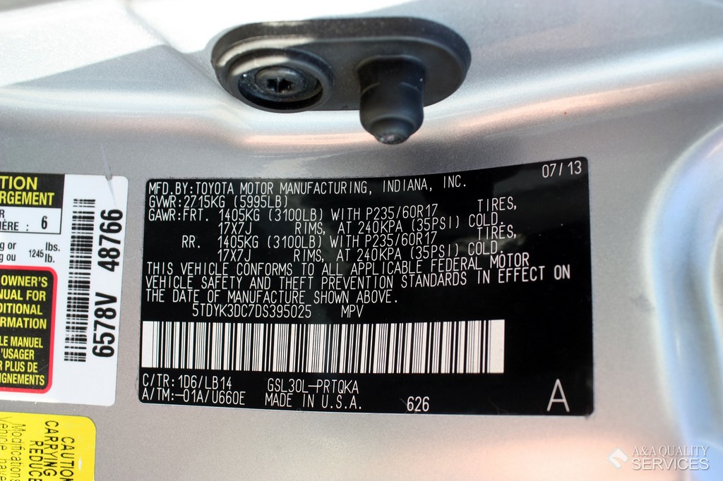 Transmission: | Automatic | Engine: | 6 Cylinder 3.5L | VIN: | 5TDYK3DC7DS395025 |