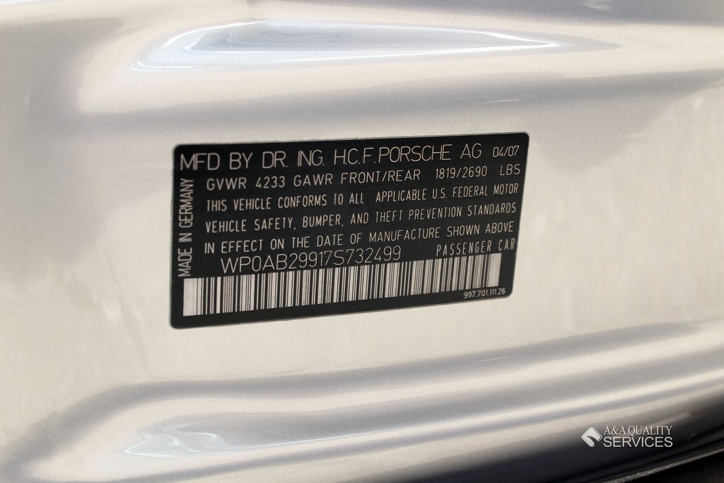 Transmission: | Automatic | Engine: | 6 Cylinder 3.6 Liter | VIN: | WP0AB29917S732499 |