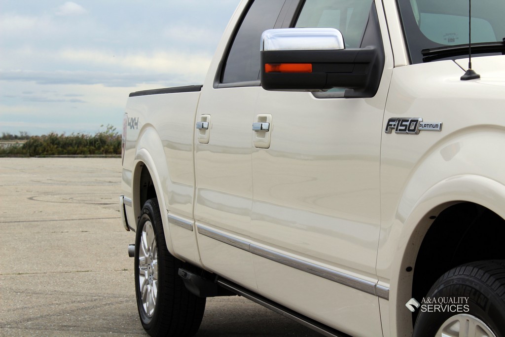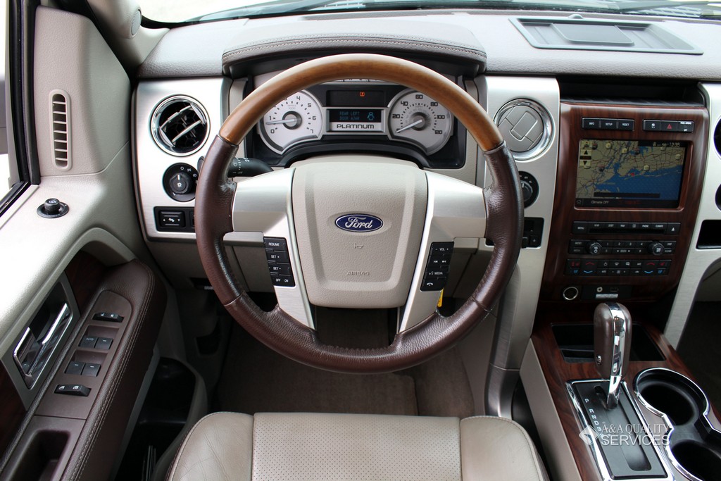 This particular 2009 Ford F150 SuperCrew Cab Platinum is finished in White with Beige leather interior. This vehicle has 130K original highway miles. Clean Carfax. It also equipped with Navigation System, Heated Seats, Cooled Seats, Leather, Sunroof, Backup Camera and Rear Parktronics. The exterior and interior are in great condition. For more information on the condition study the photographs. Please make sure that you scroll all the way to the bottom to see all sets of photographs. The car is in great condition mechanically. It has no noticeable problems. The car was maintained well during the prior possession. Overall, the car is in great condition. The car has a clean title. The car doesn't need anything, except a NEW OWNER.