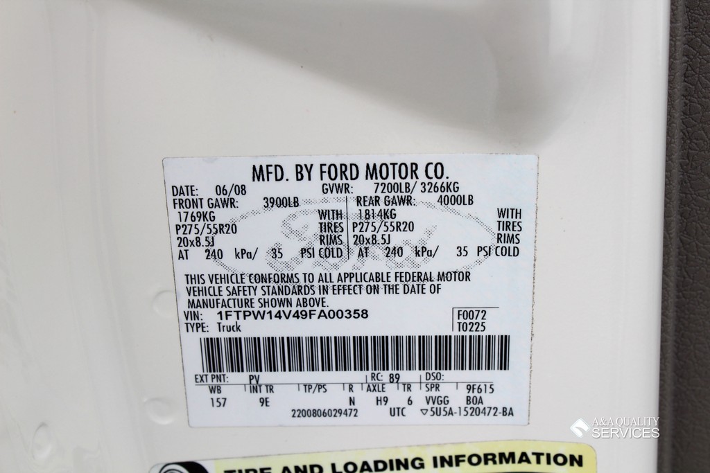 | Transmission: | Automatic | Engine: | 8 Cylinder 5.0L | VIN: | 1FTPW14V49FA00358 |